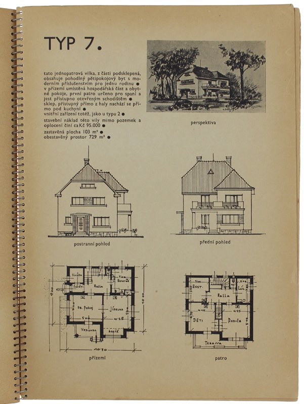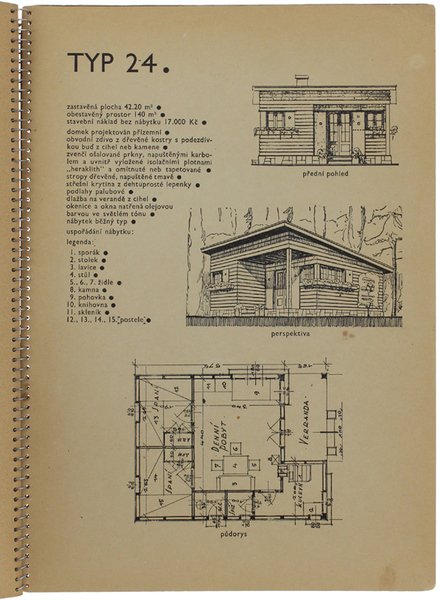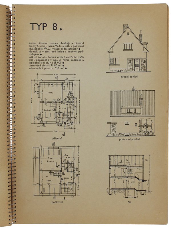 (Codice AC/3004) In 4° (30x21 cm) 25+2 pp. First edition. Czech language, 25 layouts & ground plans: cottages, villas, little buildings. Paper foxed. Spiral bound, minor handling/wear, very good. ~~~ SPEDIZIONE IN ITALIA SEMPRE TRACCIATA
