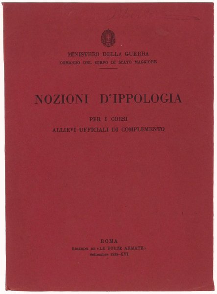 NOZIONI D'IPPOLOGIA per i corsi Allievi Ufficiali di Complemento. | Livres anciens et modernes | Ministero Dell Guerrra, Comando Corpo Di Stato Maggiore