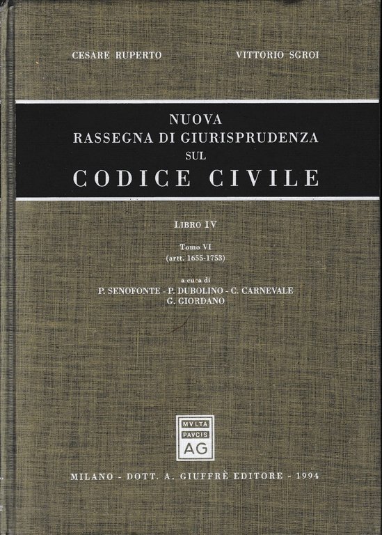 Nuova rassegna di giurisprudenza sul Codice civile Libro IV TOMO VI Artt. 1655-1753 | Livres anciens et modernes | Ruperto, Cesare - Vittorio Sgroi, ,Ruperto, Cesare - Vittorio Sgroi