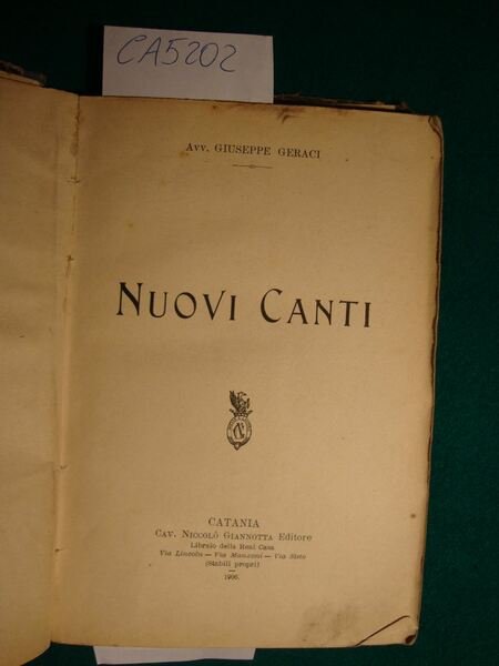 Nuovi Canti | Livres anciens et modernes | Geraci Giuseppe