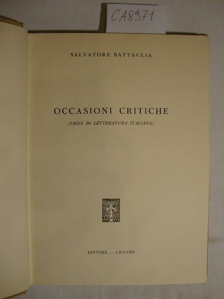 Occasioni critiche (Saggi di letteratura italiana) | Livres anciens et modernes | Battaglia Salvatore