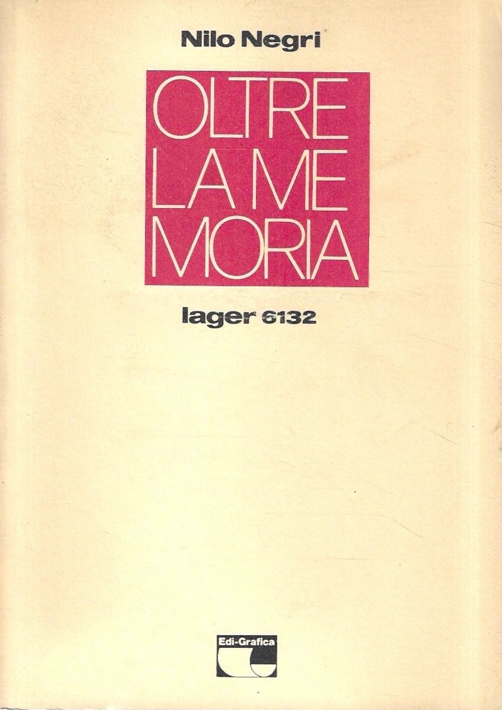 Oltre la memoria. Lager 6132 | Livres anciens et modernes | Negri, Nilo, ,Negri, Nilo