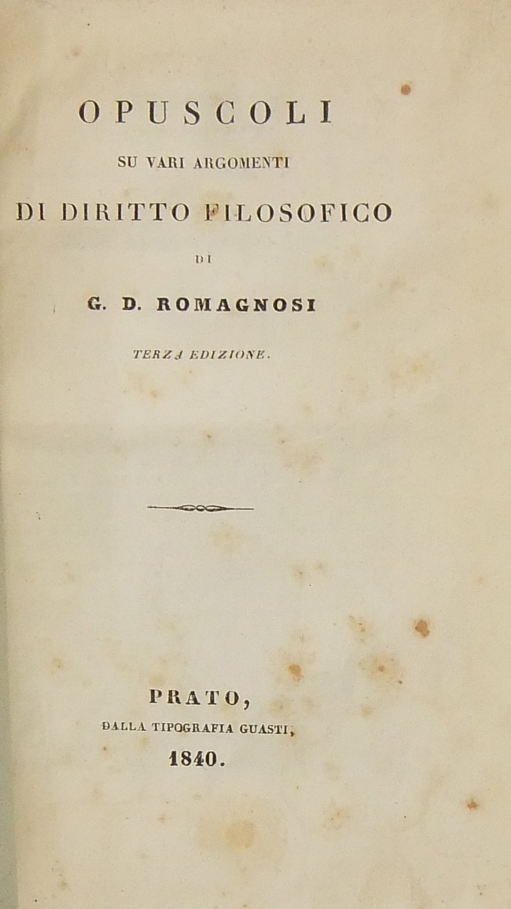Opuscoli su vari argomenti di diritto filosofico | Livres anciens et modernes | Romagnosi Gian Domenico (1761-1835)