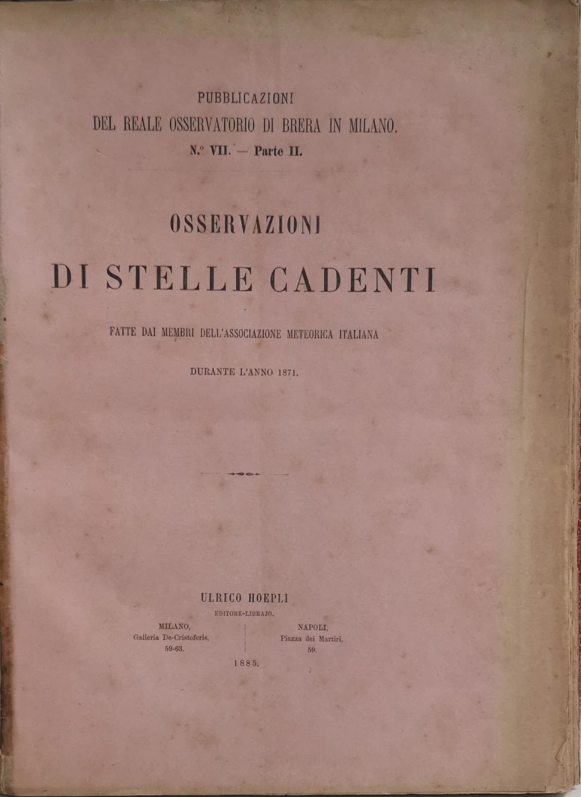 OSSERVAZIONI DI STELLE CADENTI FATTE DAI MEMBRI DELL'ASSOCIAZIONE METEORICA ITALIANA DURANTE L'ANNO 1871. | Livres anciens et modernes |