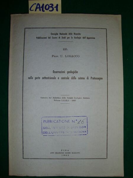 Osservazioni geologiche sulla parte settentrionale e centrale della catena di Pratomagno | Livres anciens et modernes | Losacco U.