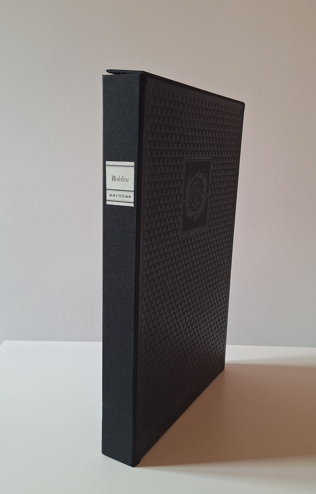 copertina in seta con illustrazione applicata, titoli in oro al piatto e al dorso, illustrazioni a colori e b/n, custodia editoriale.