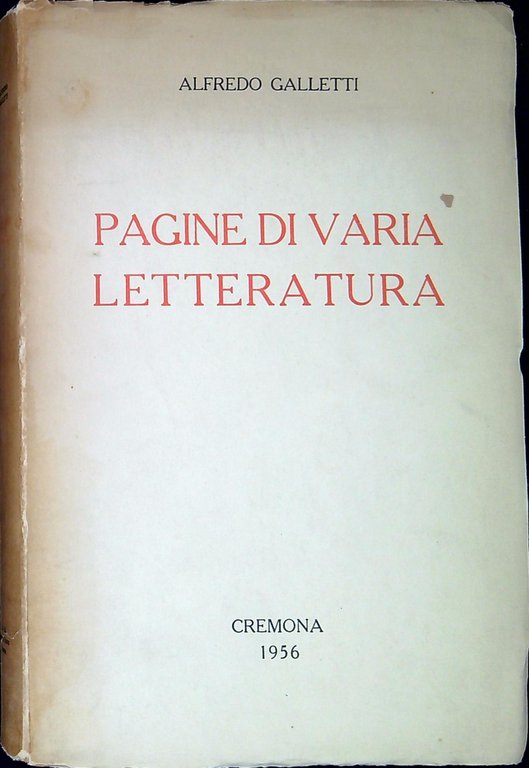 Galletti, Alfredo Pagine di varia letteratura. Cremona, Cremona nuova 1956, 22 334 p. XXIII, 334 p. ; 22 cm. (57224)