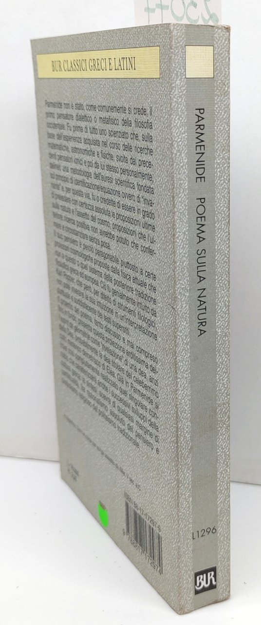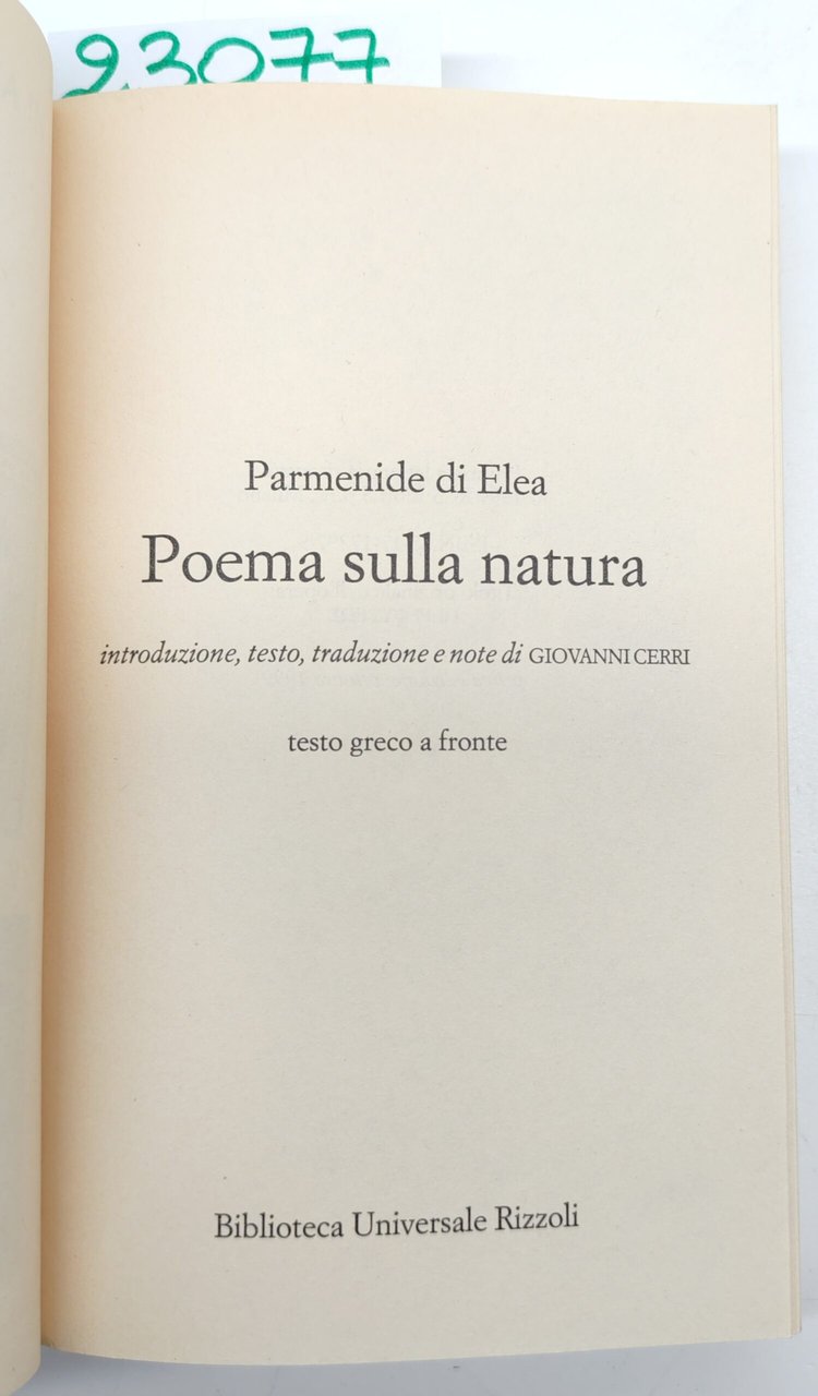 Parmenide di Elea Poema sulla natura BUR Rizzoli 1° edizione 1999