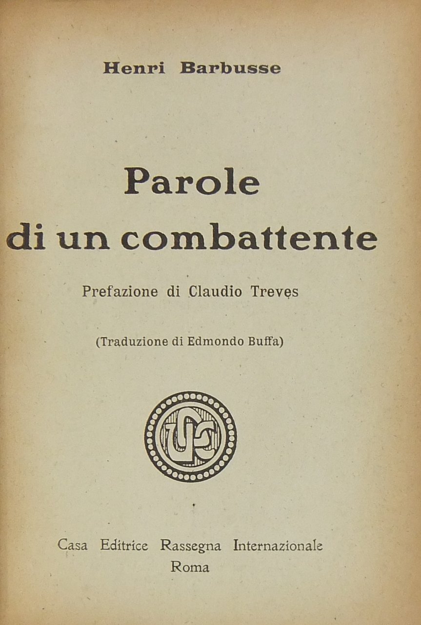 Parole di un combattente. Prefazione di Claudio Treves. (Traduzione di Edmondo Buffa) | Livres anciens et modernes | Barbusse Henri