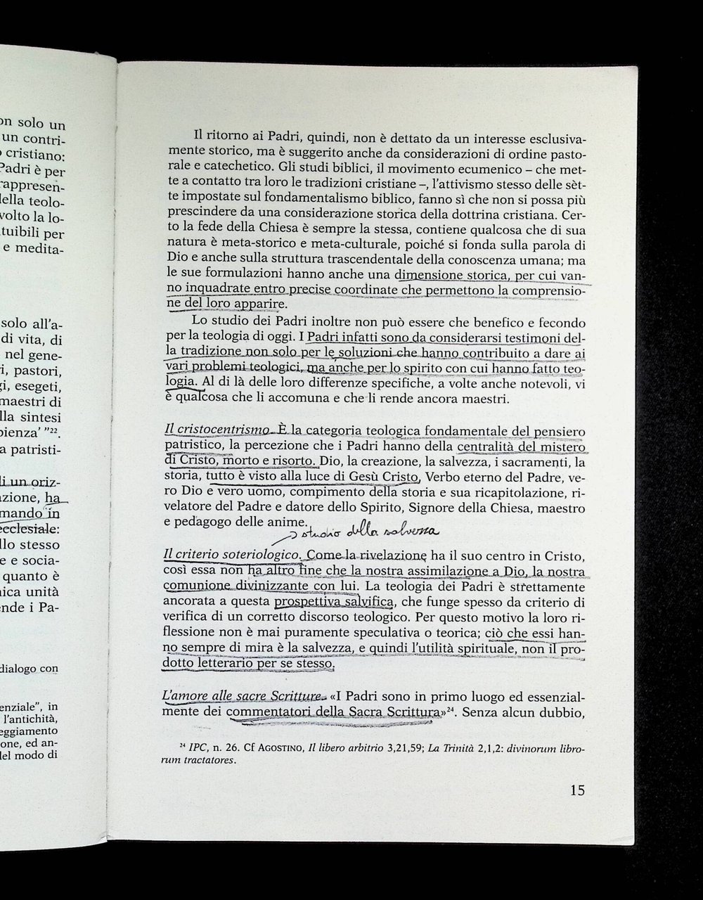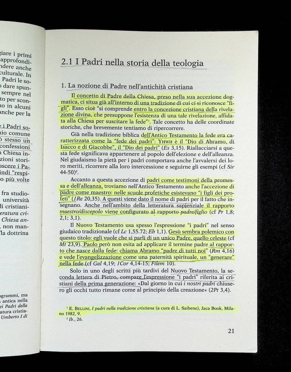 Prima parte del libro sottolineata a matita e con evidenziatore giallo