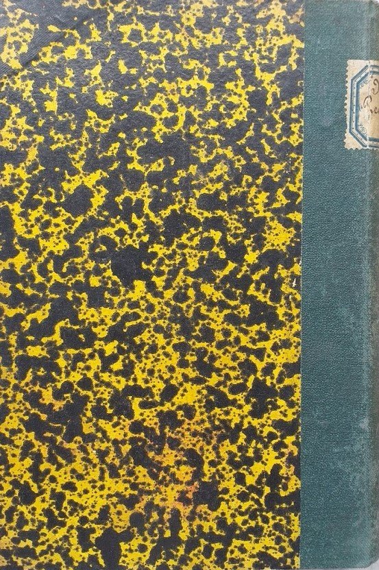 Legatura: artigianale. Copertina in cartone marmorizzato, segni d'uso ai margini. Dorso telato con titolo scritto a mano su etichetta di carta. Taglio brunito. Frontespizio con timbro che si ripete nella pagine successiva . Pagine ombrate con rare gore, strappo nella parte centrale di pagine 209. Formato18 x 12,50