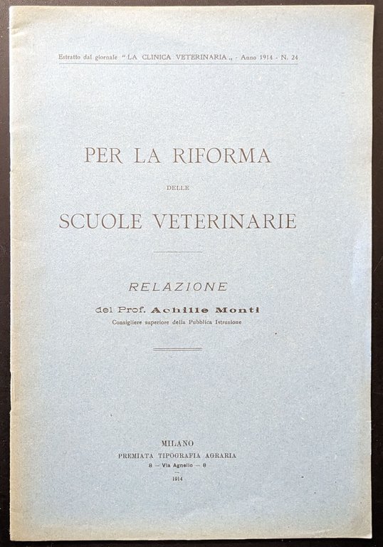Per la riforma delle scuole veterinarie | Livres anciens et modernes | Monti Achille, Monti Achille