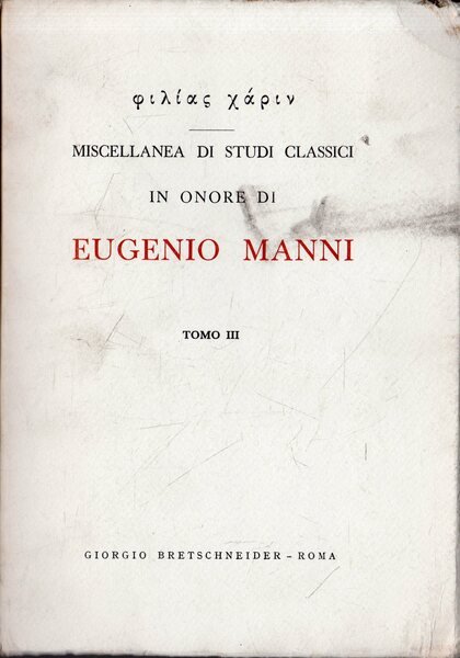 AA.VV Philias Charin : Miscellanea di studi classici in onore di Eugenio Manni (tomo III). Roma, Giorgio Bretschneider n.p. multilingual, Opera con copertina morbida in brossura. LF.46.