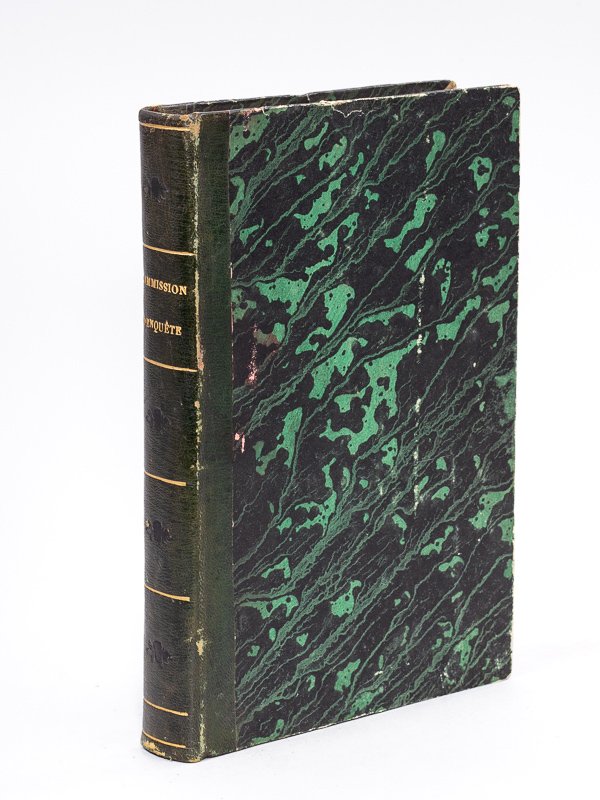 1 vol. in-8 reliure de l'époque demi-maroquin vert, dos lisse orné de 4 faux-nerfs dorés et estampé à froid, Imprimerie de Durand, Successeur de Lavigne Jeune, Bordeaux, s.d. [1848 ], 2 ff., 2 ff., 29 pp., 1 f. blanc, pp. 113-670 L'exemplaire en reliure d'époque recueille la première livraison et les livraisons 8 à 42 (manquent les livraisons 2 à 7). Cette commission d'enquête, sans caracte?re judiciaire, fut établie au sein de l'Assemble?e nationale, et charge?e d'e?tudier les causes, les modes d'action de l'attentat du 15 mai 1848 et sur l'insurrection de 23 juin 1848. Bon état (exemplaire bien relié, incomplet de 6 des 42 livraisons). Prix en l'état
