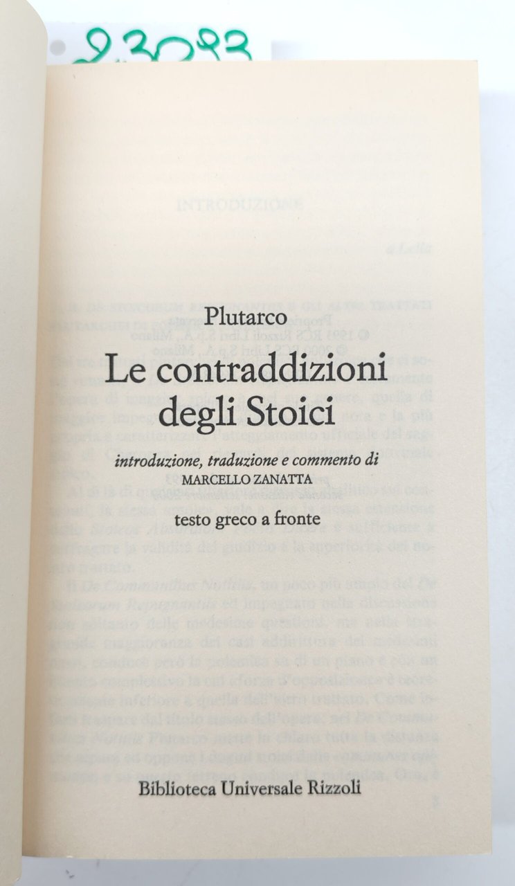 Plutarco Le contraddizioni degli stoici 2° edizione BUR Rizzoli 2000