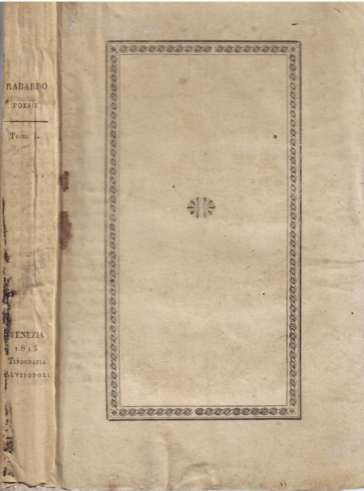 POESIE EDITE E INEDITE DI LAROMEO RABARBO - TOMO PRIMO