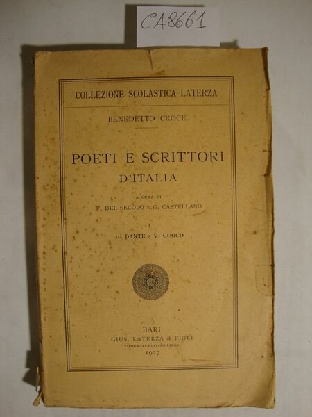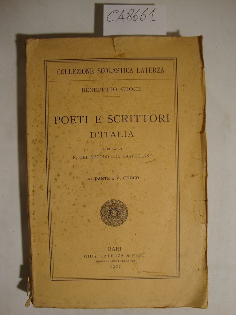 Poeti e scrittori d'Italia - A cura di F. Del Secolo e G. Castellano - I - da Dante a V. Cuoco | Livres anciens et modernes | Croce Benedetto