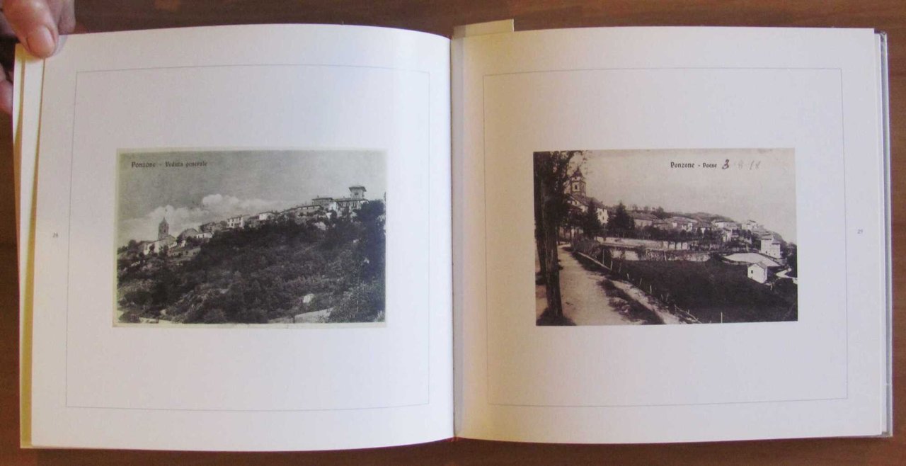 67 illustrazioni in b/n e a colori a piena pagina, riproducenti le più belle cartoline del Comune. A cura del Comune di Ponzone, 1994. Cartonato editoriale con sovracoperta acetata con titolo. Imperfezioni e mancanze ai margini della sola sovraccoperta. 24x22; pp.16 di introduzione più le 67 immagini. Raro e in Buonissimo stato. , Molto buono (Very Good)