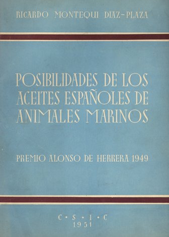Posibilidades de los aceites españoles de animales marinos. | Livres anciens et modernes | Montequi Diaz - Plaja, Ricardo.