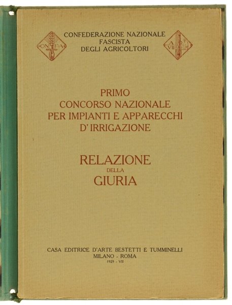 PRIMO CONCORSO NAZIONALE PER IMPIANTI E APPARECCHI D'IRRIGAZIONE. Relazione della giuria. | Livres anciens et modernes | Confederazione Nazionale Fascista Degli Agricoltori.