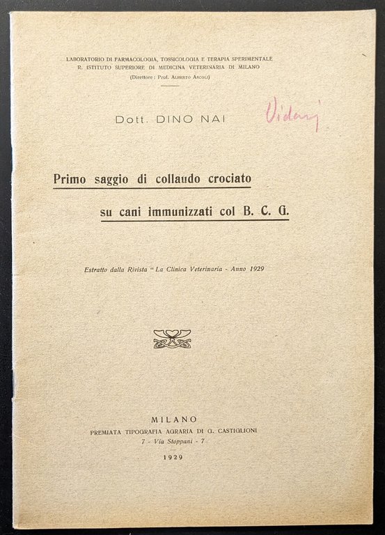 Primo saggio di collaudo crociato su cani immunizzati col B. C. G. | Livres anciens et modernes | Nai Dino D., Nai Dino D.