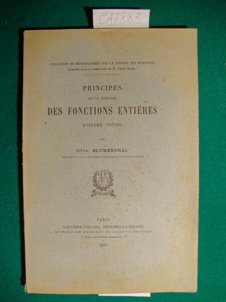 Principes de la théorie des fonctions enthéres d'ordre infini | Livres anciens et modernes | Blumenthal Otto