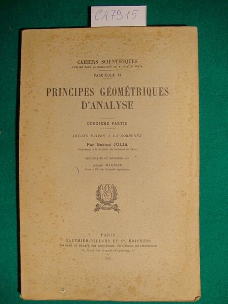 Principes géométriques d'analyse - Leçons faites a la Sorbonne (Fascicule XI) - Recueillies et redigées par André Magnier | Livres anciens et modernes | Julia Gaston