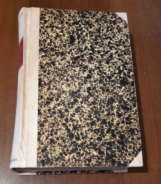 Copertina: in piena tela, sporca lievemente. Legatura: a filo refe. Dorso: usurato, con impressioni in oro. Taglio: ingiallito, con fioriture, irregolare in modo lieve. Sguardi: ingialliti. Frontespizio: ingiallito, con fioriture. Pagine testo: ingiallite, brunite ai margini. Margini delle pagine: ingialliti, con macchie. Sovraccoperta assente, con poche sottolineature a matita e con colore pastello rosso, Sguardi: con fioriture, Buono (Good) .