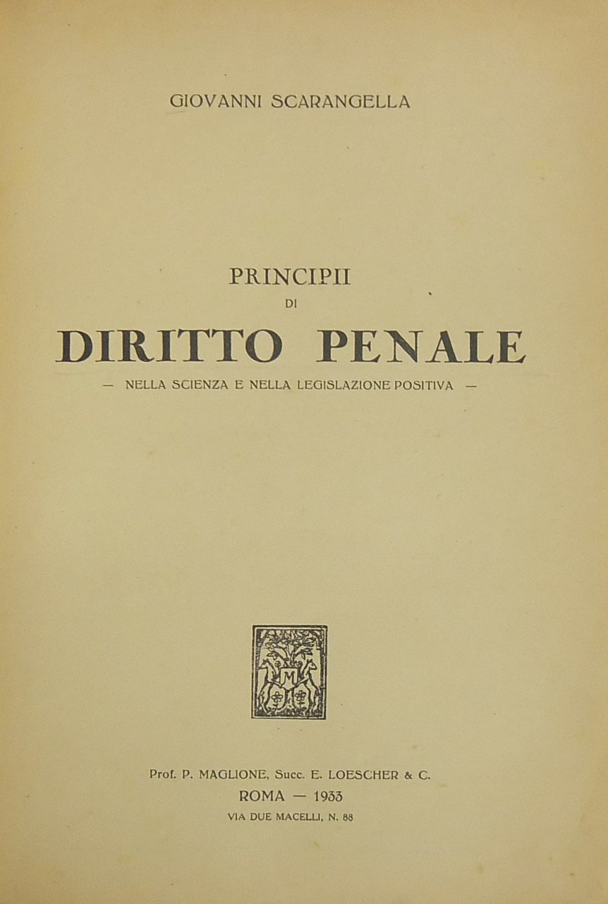 Principii di diritto penale nella scienza e nella legislazione positiva | Livres anciens et modernes | Scarangella Giovanni