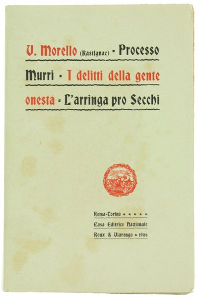 PROCESSO MURRI - I DELITTI DELLA GENTE ONESTA - L'ARRINGA PRO SECCHI. | Livres anciens et modernes | Morello V. (Rastignac).