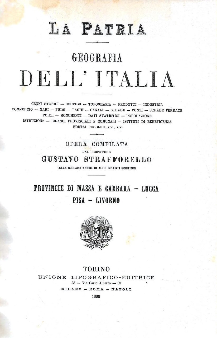 Provincie di Massa e Carrara - Lucca - Pisa - Livorno (La Patria - Geografia dell'Italia) | Livres anciens et modernes | Strafforello, Gustavo, ,Strafforello, Gustavo