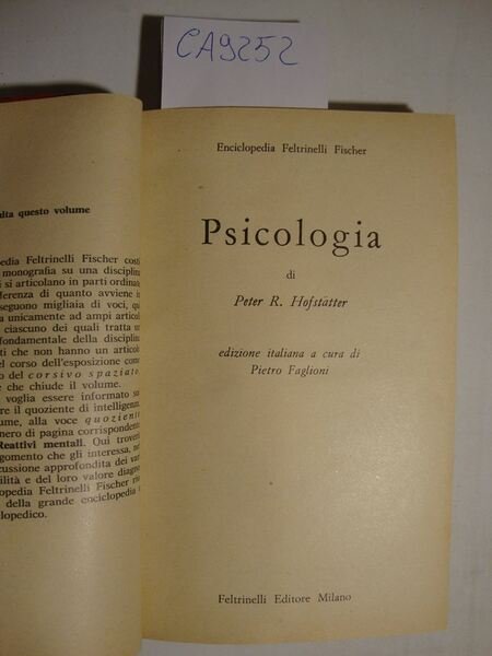 (Collana : Enciclopedia Feltrinelli Fischer - n. 6) Ogni vol. dell'Enciclopedia Feltrinelli Fischer costituisce una vera e propria monografia su una discplina particolare; in questo vol. lo studio della psicologia. Edizione a cura di Pietro Faglioni, con illustr. in b.n. n.t.