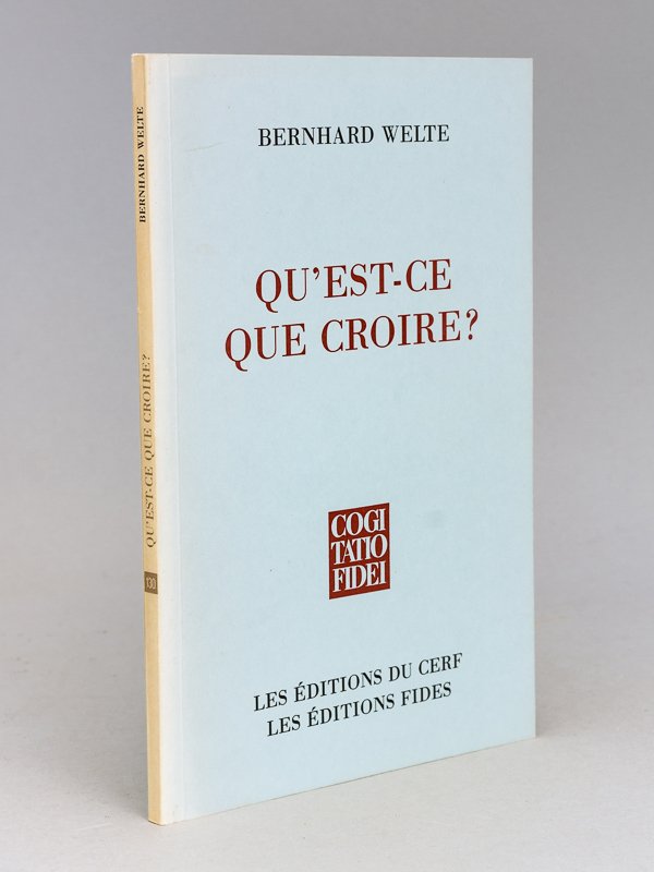 Traduit de l'allemand par Monika Thoma et Jean-Claude Petit, 1 vol. in-8 br., coll. Cogitatio Fidei, 130, Les Editions du Cerf, Les Editions Fides, Montréal, Paris, 1984, 83 pp. Bon exemplaire (ex-libris ms., très bon état par ailleurs). "Ce livre veut expliciter ce que croire veut dire. En dialogue avec quelques penseurs de notre époque, comme Heidegger et Lévinas, mais aussi dans la mouvance des pensées d'Augustin, de Newman, d'autres encore."