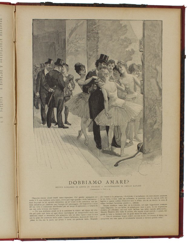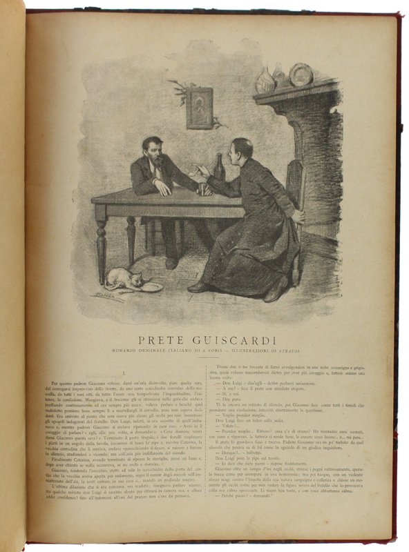 (Codice CW/3977) Formato in folio (38 cm) Quattro novelle complete, con varie illustrazioni, belle incisioni di Strauss, Janet Lange, Leone di Tinseau, Emilio Bayard, C.Ciani. Autori e titoli: Noris Antonio, PRETE GUISCARDI. 28 pp. Boldwin Carlo, AVVENTURE DI UN CACCIATORE IN AFRICA, 20 pp., Leone de Tinsau, DOBBIAMO AMARE? 40 pp., G.L.Piccardi, LA GRAN GIORNATA DI OLIVIERO PEGNA, 32 pp. Legatura mezza tela d'epoca con angoli, lievemente usata, ma solida, titolo oro. Interno ottimo. ~~~ SPEDIZIONE IN ITALIA SEMPRE TRACCIATA