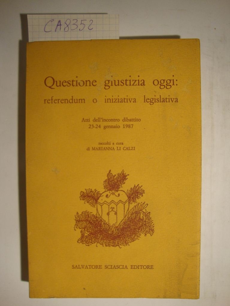 Questione giustizia oggi: referendum o niziativa legislativa - Atti dell'incontro dibattito 23-24 gennaio 1987 | Livres anciens et modernes | Li Calzi Marianna