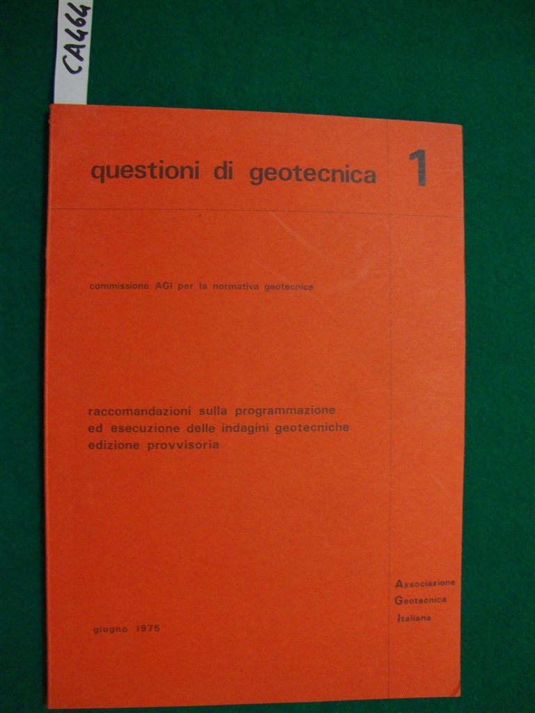 Questioni di geotecnica 1 - Raccomandazioni sulla programmazione ed esecuzione delle indagini geotecniche - (Commissione AGI per la normativa geotecnica) | Livres anciens et modernes |