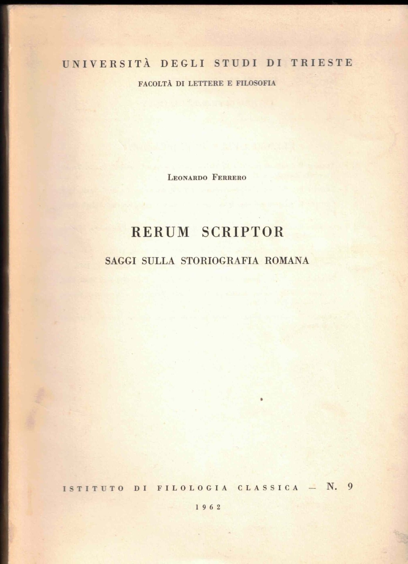 Rerum scriptor. Saggi sulla storiografia romana (1962) | Livres anciens et modernes | Leonardo Ferrero, ,Leonardo Ferrero