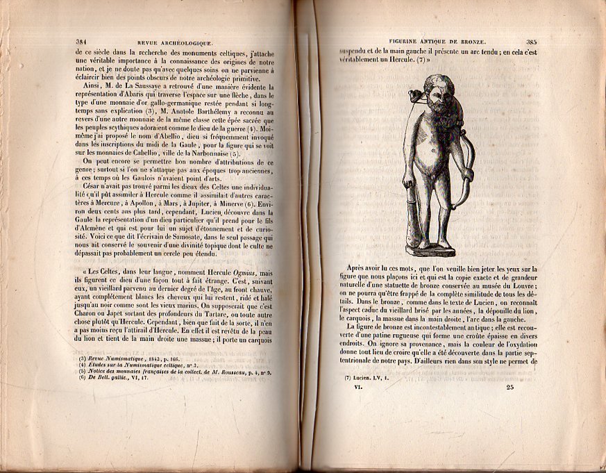 1849-1850. Mezza legatura in pelle con titoli al dorso e al piatto brossura marmorizzata. 807 p.; Ill.; 26 cm. Il volume raccoglie gli articoli della rivista che vanno dal 1849 al 1850 della storica rivista di archeologia pubblicata dal 1844 e tuttora attiva. Le numerose incisioni presenti a corredo del testo ( alcune rappresentate da fogli estensibili) sono separate da veline e sono per lo più fuori testo. Pagine leggermente ingiallite ai bordi, rare efflorescenze e lievi segni del tempo, per il resto il volume si presenta in ottimo stato.