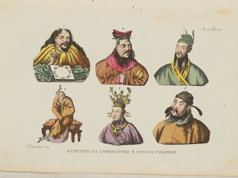 Incisione del 1825 circa che rappresentano ritratti di celebri personaggi ed imperatori Atlante: Il costume antico e moderno 1823-1838 - Asia 1823-26 Autore: Andrea Bernieri Data: 1825 circa Tecnica: Acquaforte Dimensione del foglio: 16x23 cm Dimensione incisione: 10,5x16 cm Condizioni: Buone. Alcune fioriturePrint of 1825 circa representing portraits of famous emperors and men. Atlas: Il costume antico e moderno 1823-1838 - Asia 1823-26 Author: Andrea Bernieri Date: 1825 circa Technique: Steel etching engraving Leaf Dimension: 16x23 cm (6.5x9.06 inches) Engraving Dimension: 10,5x16 cm (4.13x6.50 inches) Conditions: Good conditions. Some foxings.