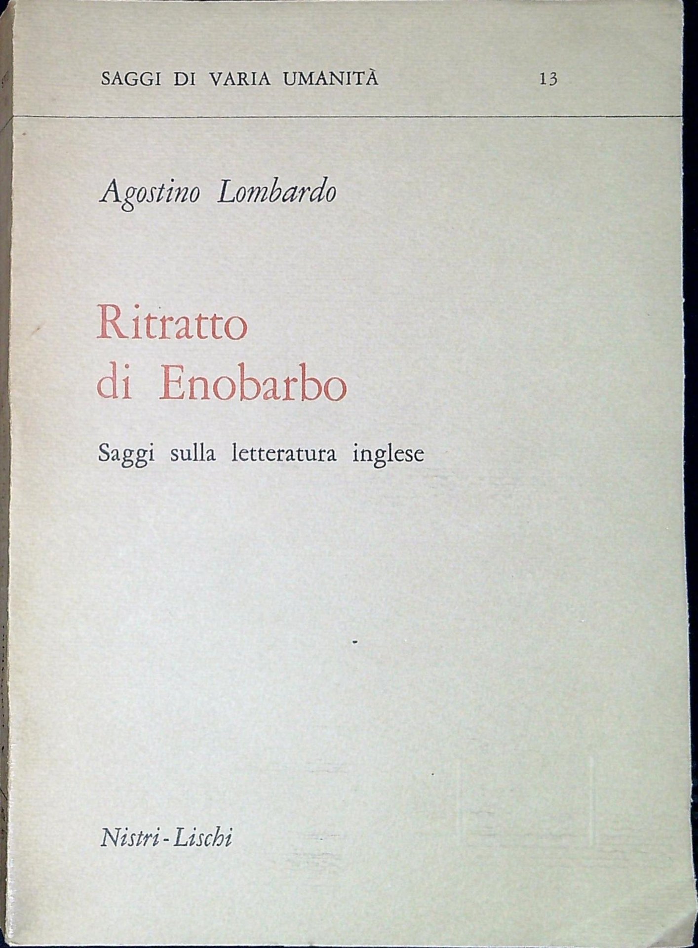 Lombardo; Agostino Ritratto di Enobardo. Pisa, nistri-Lischi 1971, 20 365 p. 365 p. 20 cm (57210)