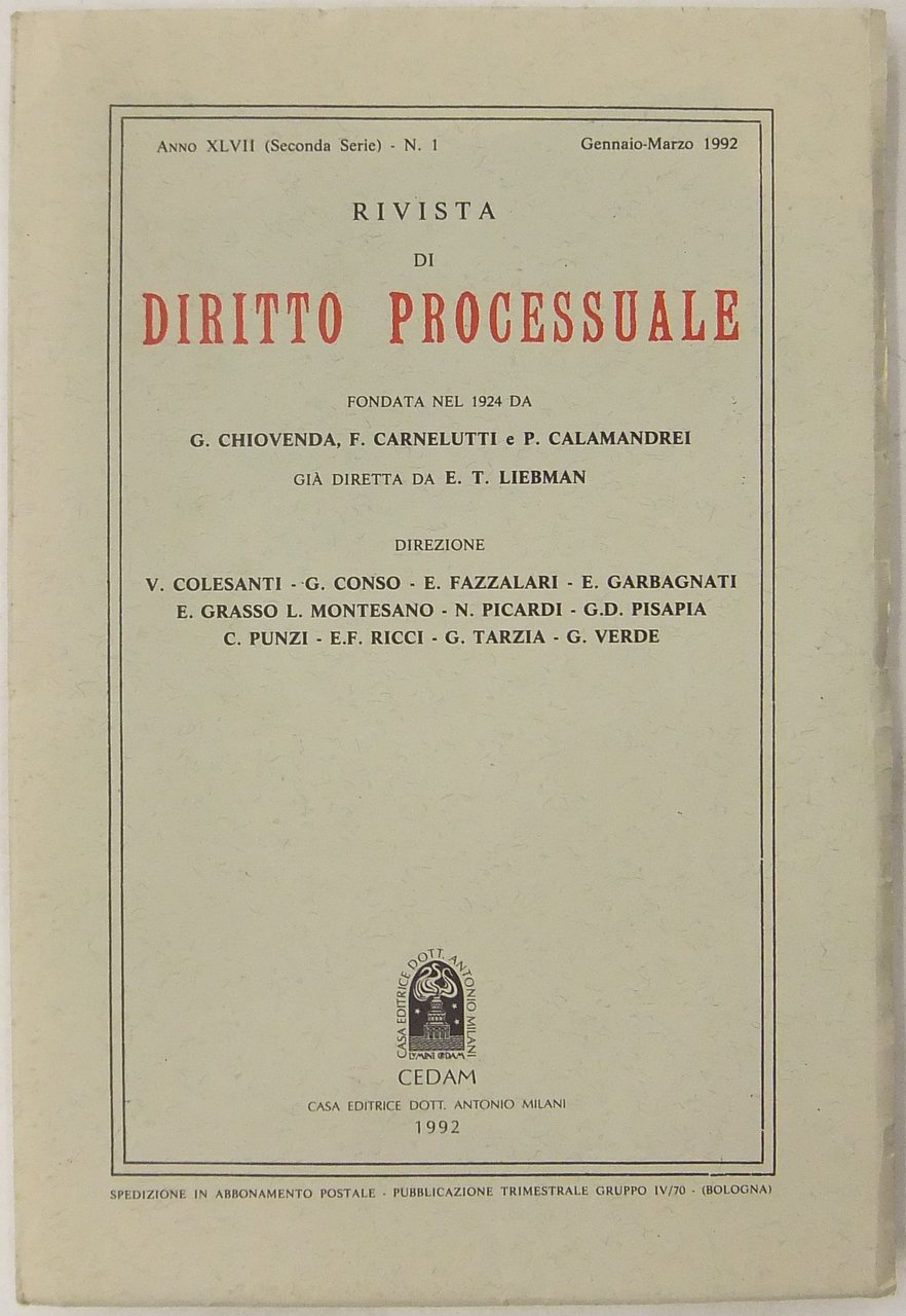 Rivista di Diritto Processuale. Annata 1992. Diretta da: Francesco Carnelutti, Giuseppe Chiovenda, Piero Calamandrei, Enrico Tullio Liebman. Anno XLVII (Seconda Serie)