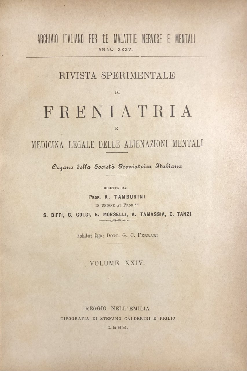 Rivista sperimentale di freniatria e di medicina legale delle alienazioni mentali. Organo della società freniatrica italiana. Vol. XXIV - Anno 1898 | Livres anciens et modernes | Autori Vari