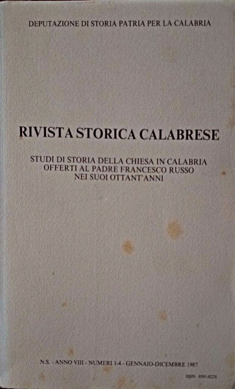 Rivista storica calabrese Studi di storia della Chiesa in Calabria offerti al padre Francesco Russo nei suoi ottant'anni Anno VIII, Numeri 1-4 , GENNAIO - DICEMBRE 1987