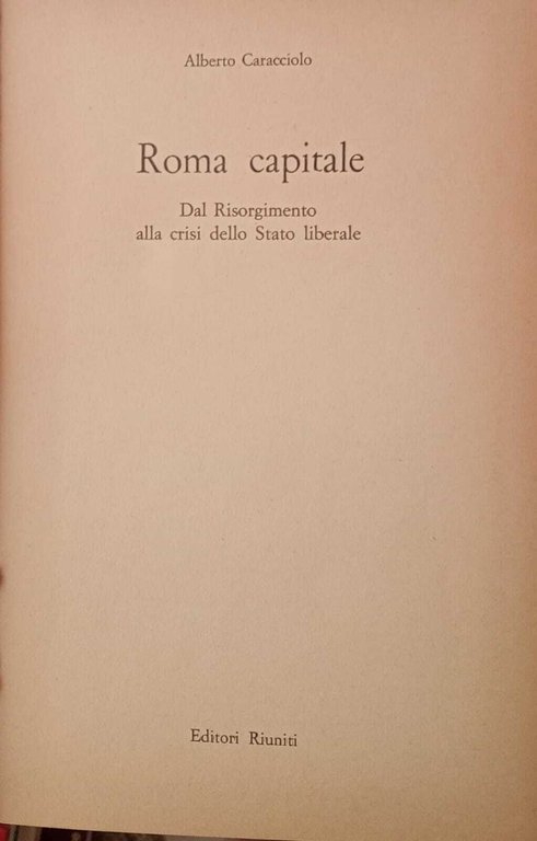 Roma capitale. Dal Risorgimento alla crisi dello Stato liberale. | Livres anciens et modernes | Alberto Caracciolo, ,Alberto Caracciolo