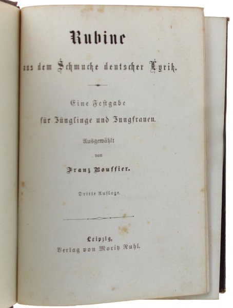 RUBINE AUS DEM SCHMUCKE DEUTSCHER LYRIK. Eine Festgabe für Jünglinge und Jungfrauen. Dritte auflage. | Livres anciens et modernes | Bouffier Franz.