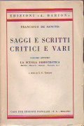 SAGGI E SCRITTI CRITICI E VARI - LA SCUOLA DEMOCRATICA (Mazzini - Rossetti - Berchet - Niccolini, ecc.) | Livres anciens et modernes | De Sanctis Francesco