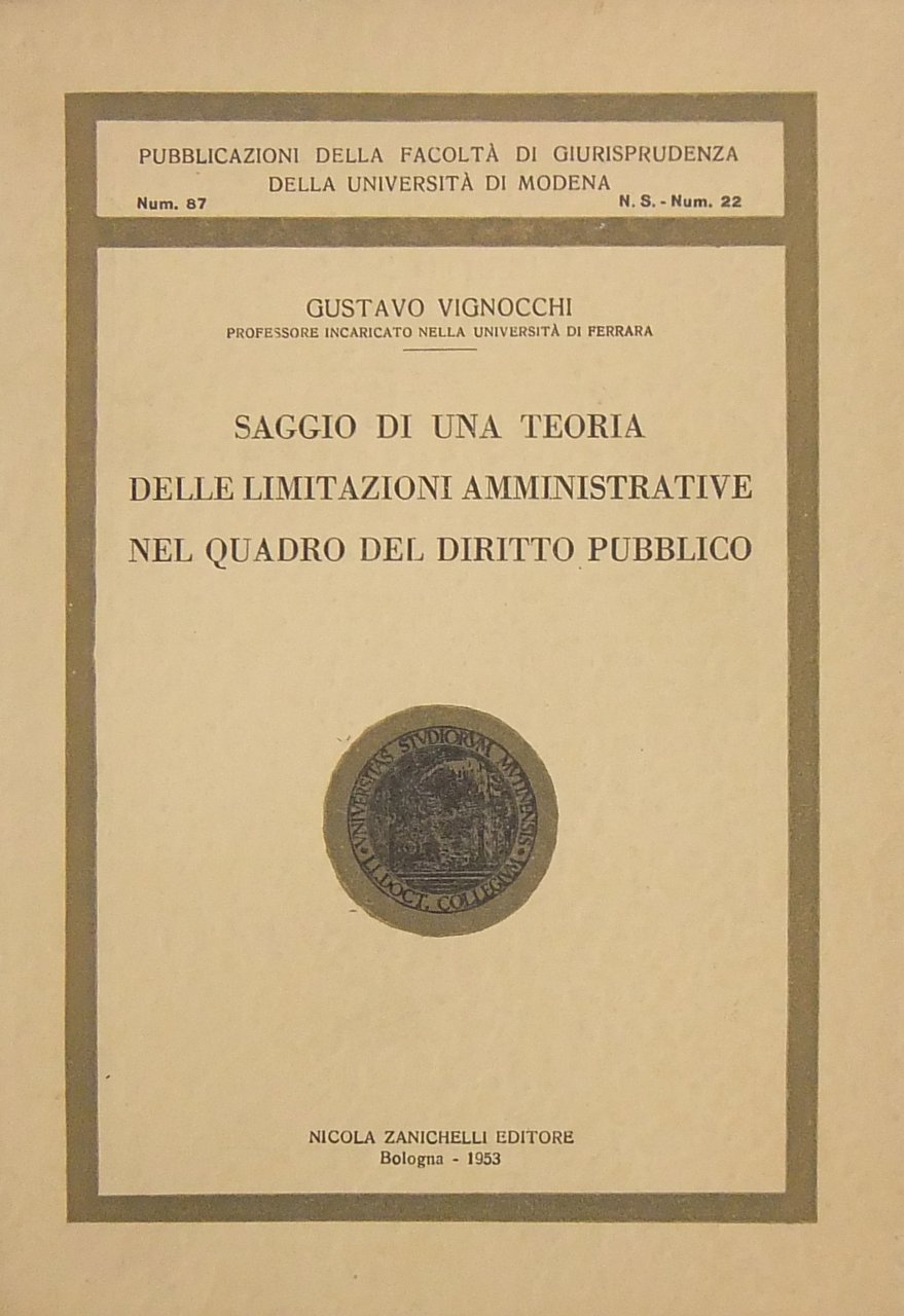 Saggio di una teoria delle limitazioni amministrative nel quadro del diritto pubblico | Livres anciens et modernes | Vignocchi Gustavo