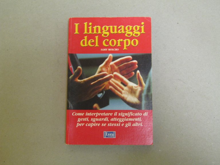 Samy Molcho Samy Molcho. I linguaggi del corpo. Como, Lyra Libri 2004 - X italiano, in ottavo pp.280 Come interpretare il significato di gesti, sguardi, atteggiamenti, per capire se stessi e gli altri. Angolo superiore di pagina 81 piegato. Copertina lievemente usurata.