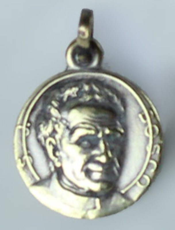 (Codice ZZ/0607) Medaglietta argentata diametro mm 13; ritratto del santo e immagine di Maria Ausiliatrice con scritta "Maria Auxilium Christianorum". Ottimo stato, come da foto. ~~~ SPEDIZIONE IN ITALIA SEMPRE TRACCIATA