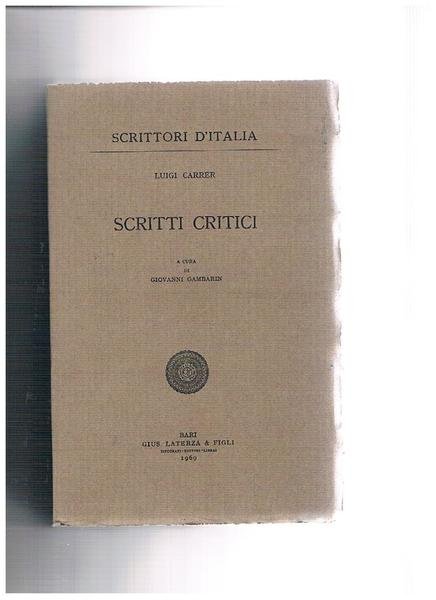 Scritti critici. A cura di Giovanni Gambarin. N° 242 della collana. | Livres anciens et modernes | Carrer Luigi.